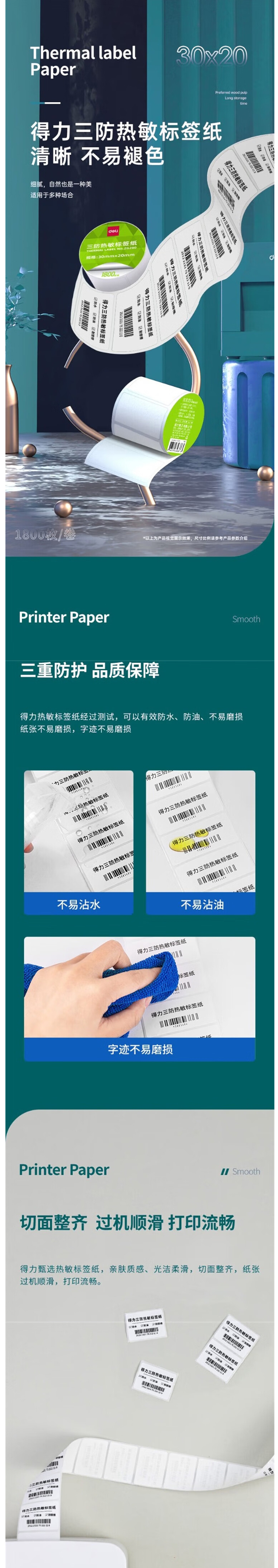 得力(deli)ZG300 标签打印纸/条码纸 三防热敏标签纸电子面单打印机热敏贴纸防水防油不干胶多规格打印纸