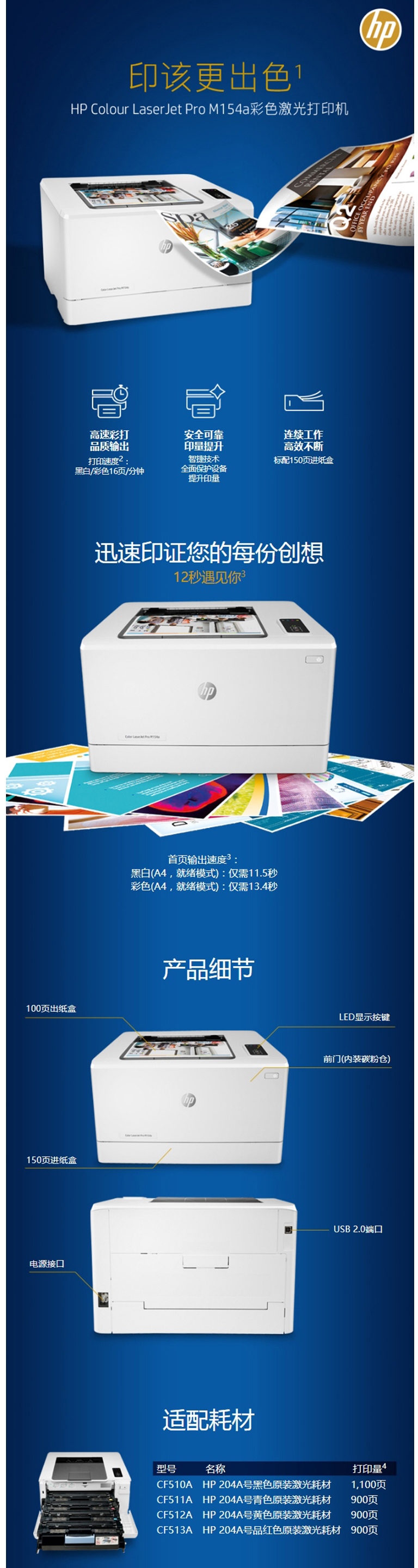 当前位置: 首页>设备>打印复印>彩色打印机>惠普(HP)M154a 彩色打印机 Colour LaserJet Pro 彩色激光打印机