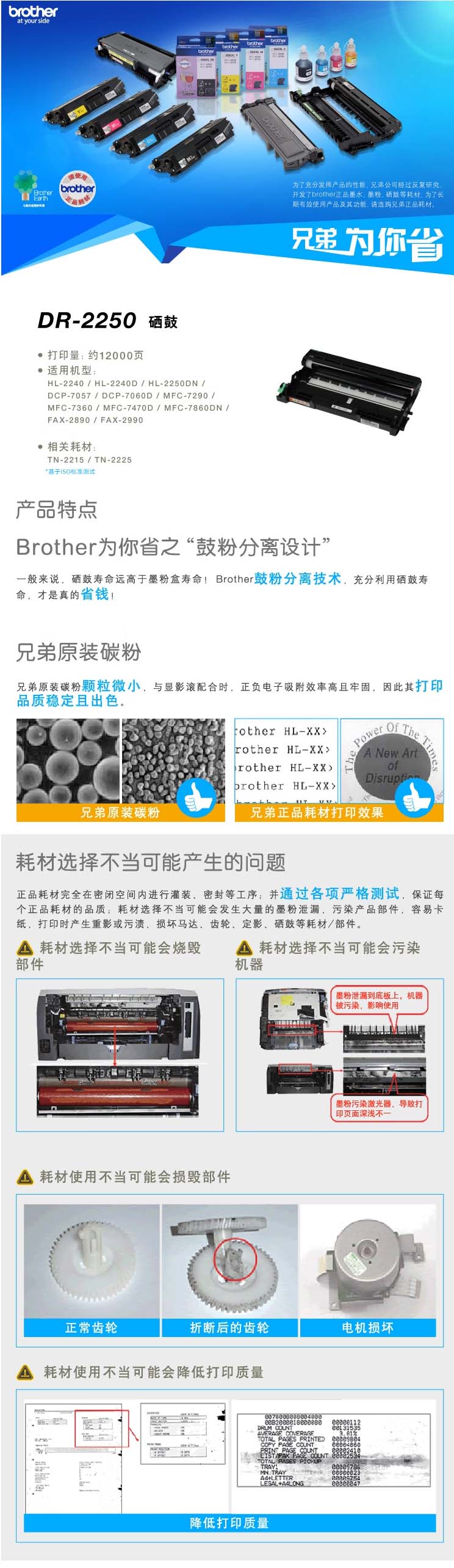 硒鼓>兄弟(brother)DR-2250 硒鼓 黑色硒鼓架 (不包含墨粉盒)(适用机型兄弟 7360 2240D 2250DN 7060D )
