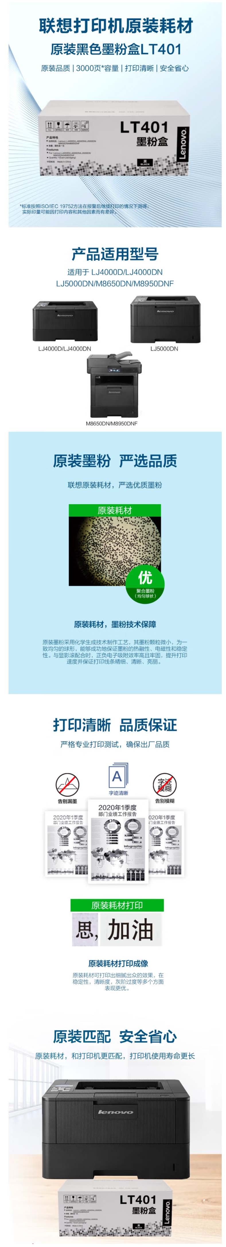 联想(Lenovo)LT401 粉盒 原装黑色墨粉(适用LJ4000D LJ4000DN LJ5000DN M8650DN M8950DN打印机)