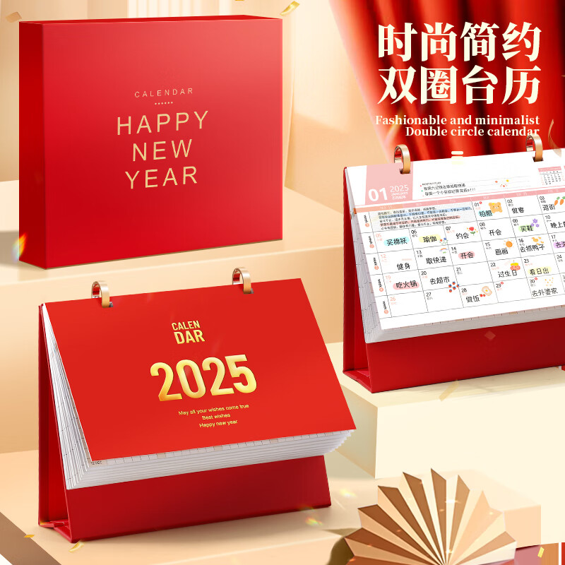 嘉宴(Jryan)084-252 台历2025年新款架简约创意桌面小摆件蛇年日历本计划打卡年历月历商务办公翻页可爱记事本考研小台历 红色2025(红皮架)