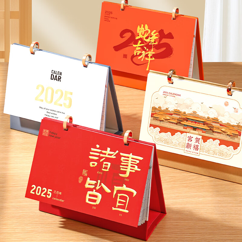 当前位置: 首页>文具>记事本>嘉宴(Jryan)084-252 台历2025年新款架简约创意桌面小摆件蛇年日历本计划打卡年历月历商务办公翻页可爱记事本考研小台历 红色2025(红皮架)