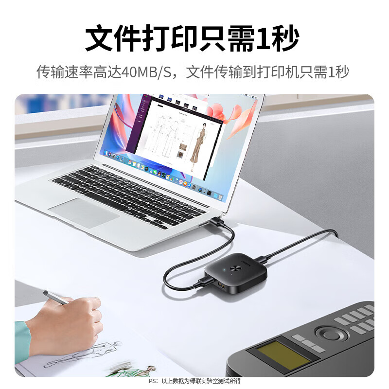 绿联(UGREEN)CM689 集线器 USB2.0打印机共享器分线器一分二 二进一出双向切换器 台式机笔记本电脑接键鼠U盘共享2口转换器