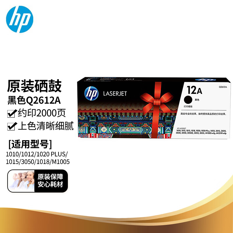 惠普(HP)硒鼓 Q2612A 原装黑色硒鼓12A(适用1022/3015/3020/3030/3052/3055打印机)印量2000页