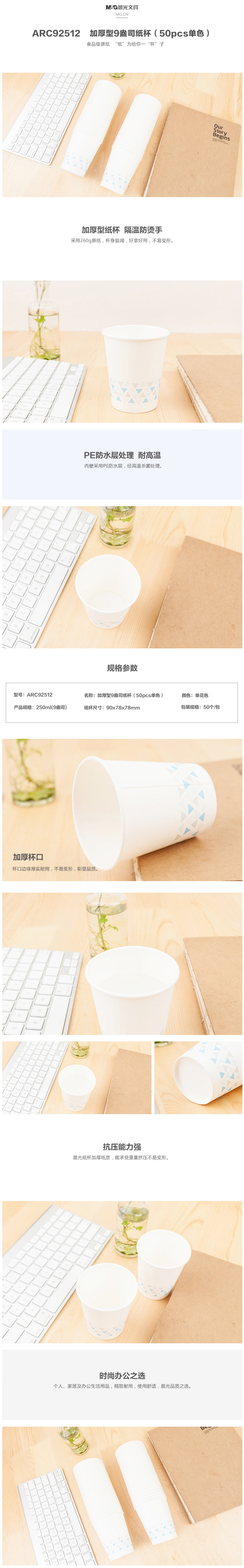 晨光(M&G) ARC92512 一次性纸杯 50pcs 加厚型9盎司 单色