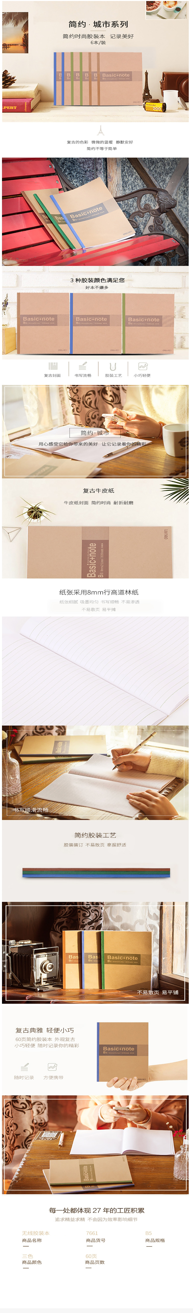 得力薄本册SA-7661无线装订本(混)-60页-B5(本)1本